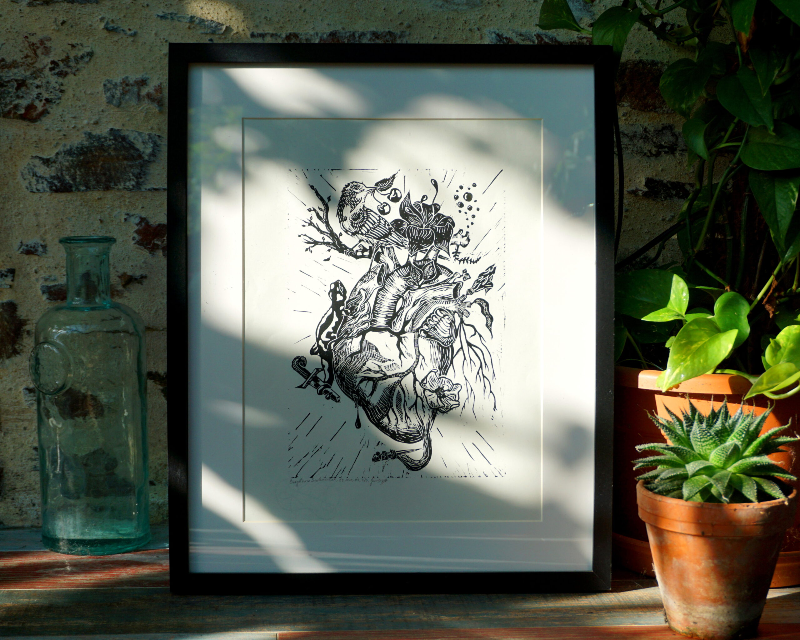 Au croisement de la gravure et des arts visuels, mon travail explore des univers graphiques à travers différents angles : séries d’illustrations, expositions ou encore performances.